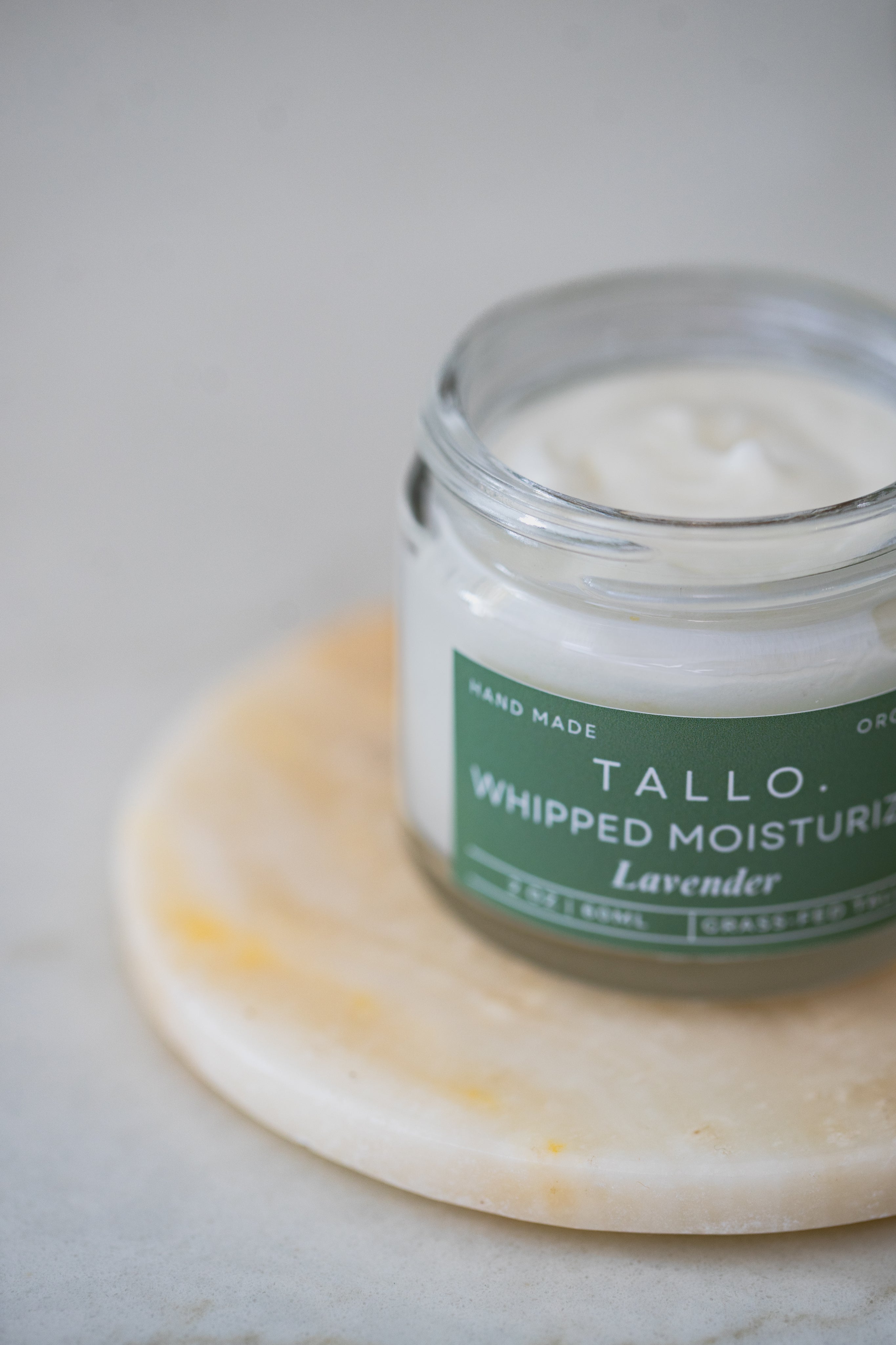 We carefully selected each ingredient for its ability to deeply nourish, hydrate, and heal the skin—without compromise. Our hero ingredient, grass-fed and grass-finished beef tallow, is rich in skin-loving vitamins and fatty acids that mimic your skin’s natural oils, helping to restore the barrier and lock in lasting moisture. Each jar of TALLO is handmade, crafted in the USA with integrity and care. We’re committed to transparency, sustainability, and creating skincare that honors both your body and the earth.Depending on the formula, we also infuse organic lavender, frankincense, or other skin-benefiting essential oils—each chosen for their calming, rejuvenating, and skin-repairing benefits.